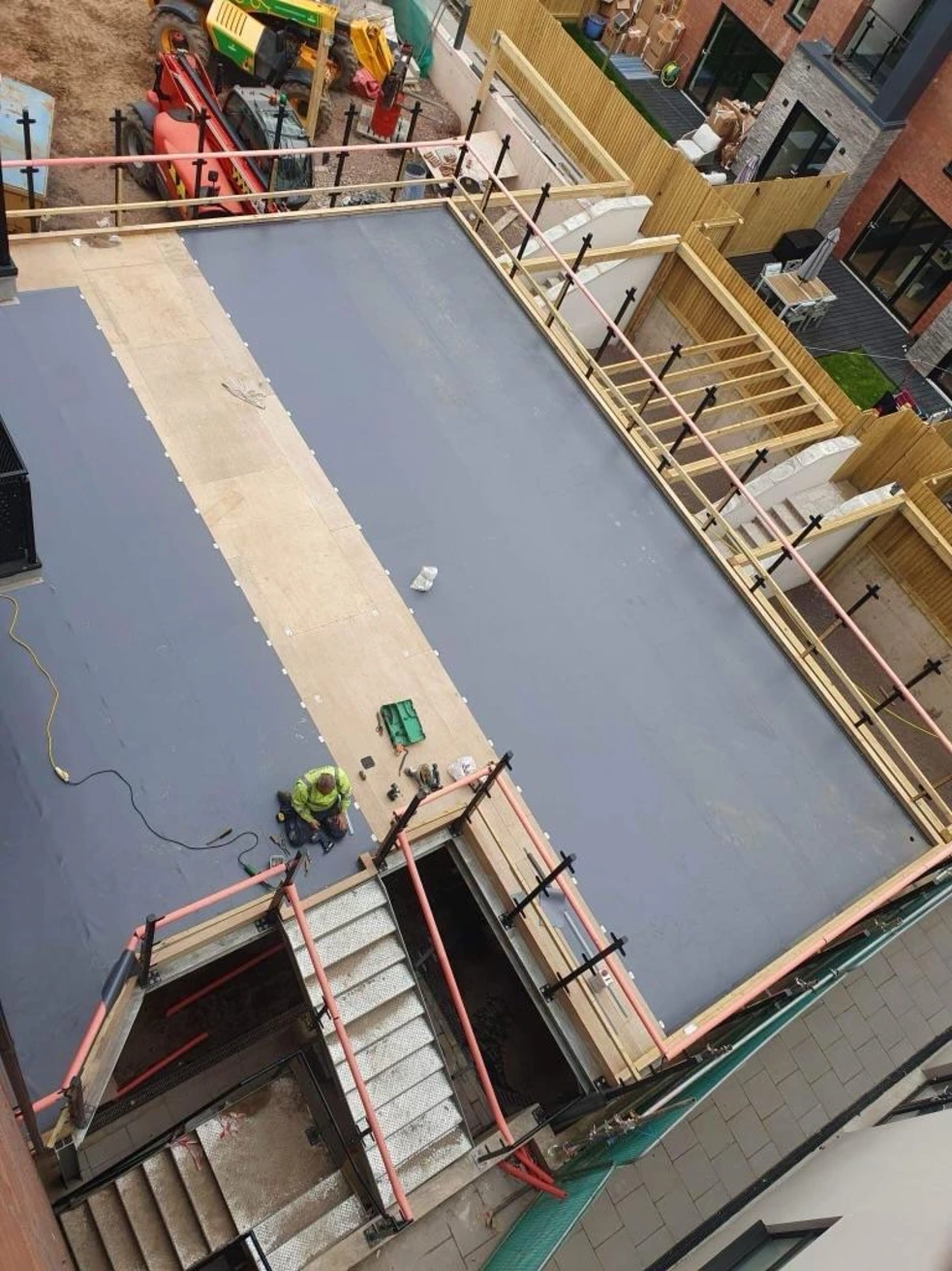 IKO Ultra Torch on Felt roofing system with a cut to falls bespoke insulation system 872 m2